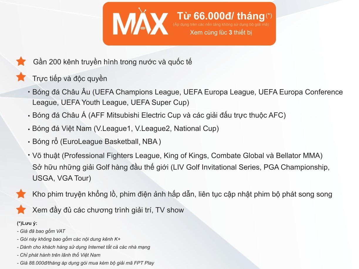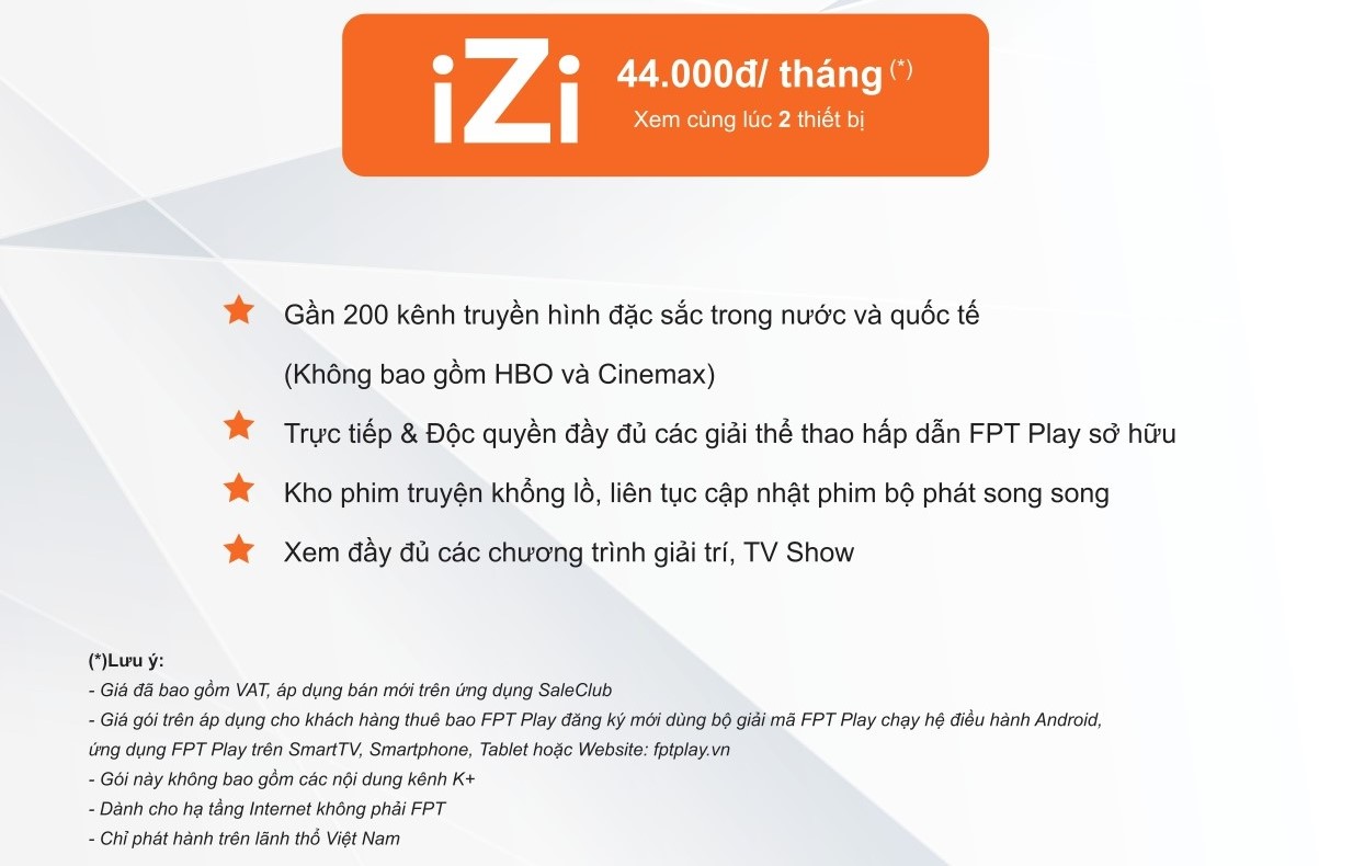 Các gói dịch vụ FPT Play cho khách hàng lựa chọn phù hợp mọi nhu cầu Đăng ngày 11/06/202322/08/2024 by FPT Telecom GÓI MAX GÓI VIP GÓI IZI GÓI K+ DANH SÁCH KÊNH FPT Telecom. Lắp đặt trọn gói FPT Camera thông minh giám sát an ninh cho mọi nhà Internet LUX WiFi-6 | Trải nghiệm ngay Internet cáp quang băng thông không giới hạn.