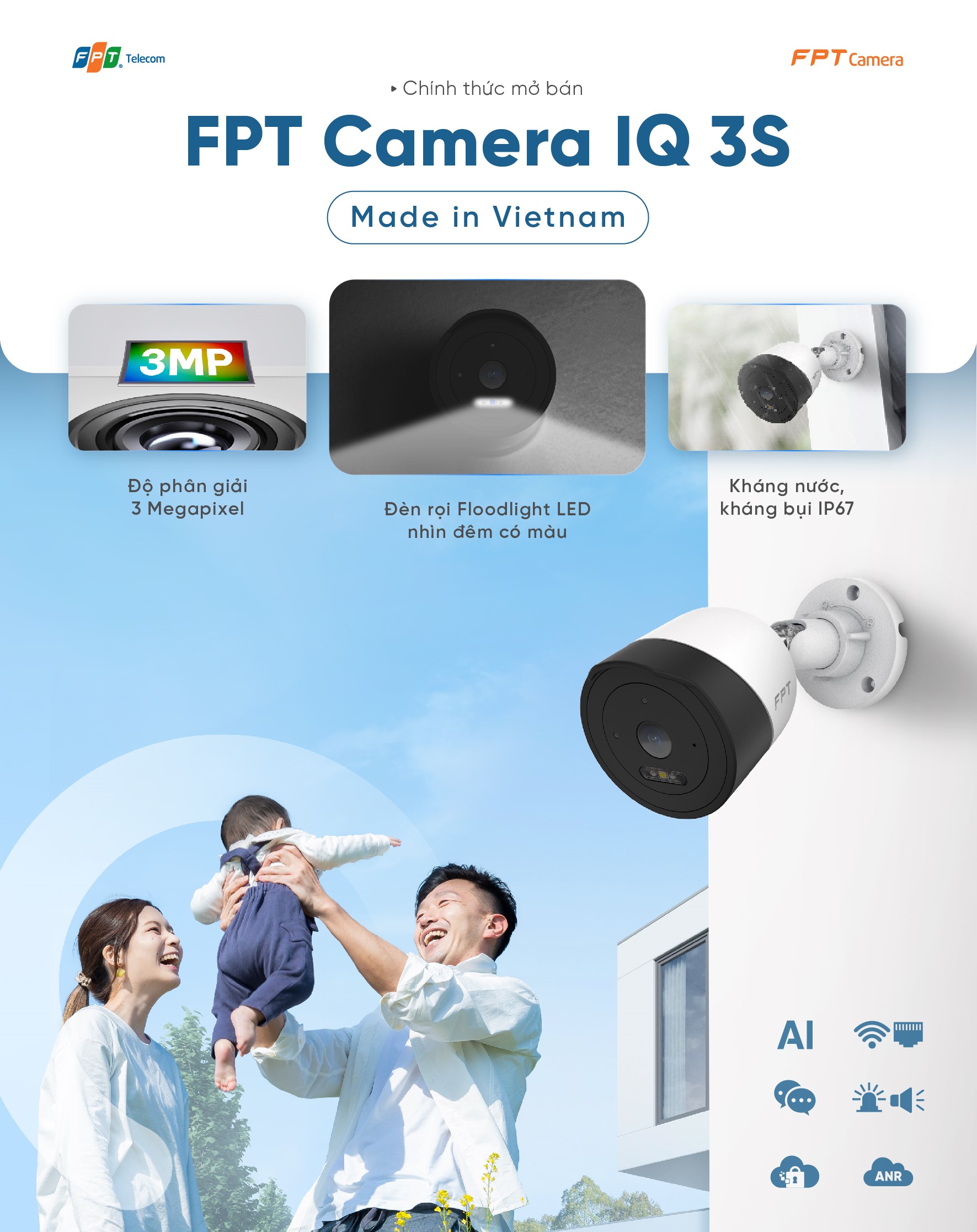 FPT Camera IQ3S là camera an ninh ngoài trời thế hệ mới được ra mắt vào năm 2024. Với thiết kế hiện đại, nhỏ gọn cùng nhiều tính năng thông minh, IQ3S là lựa chọn hoàn hảo cho gia đình bạn.