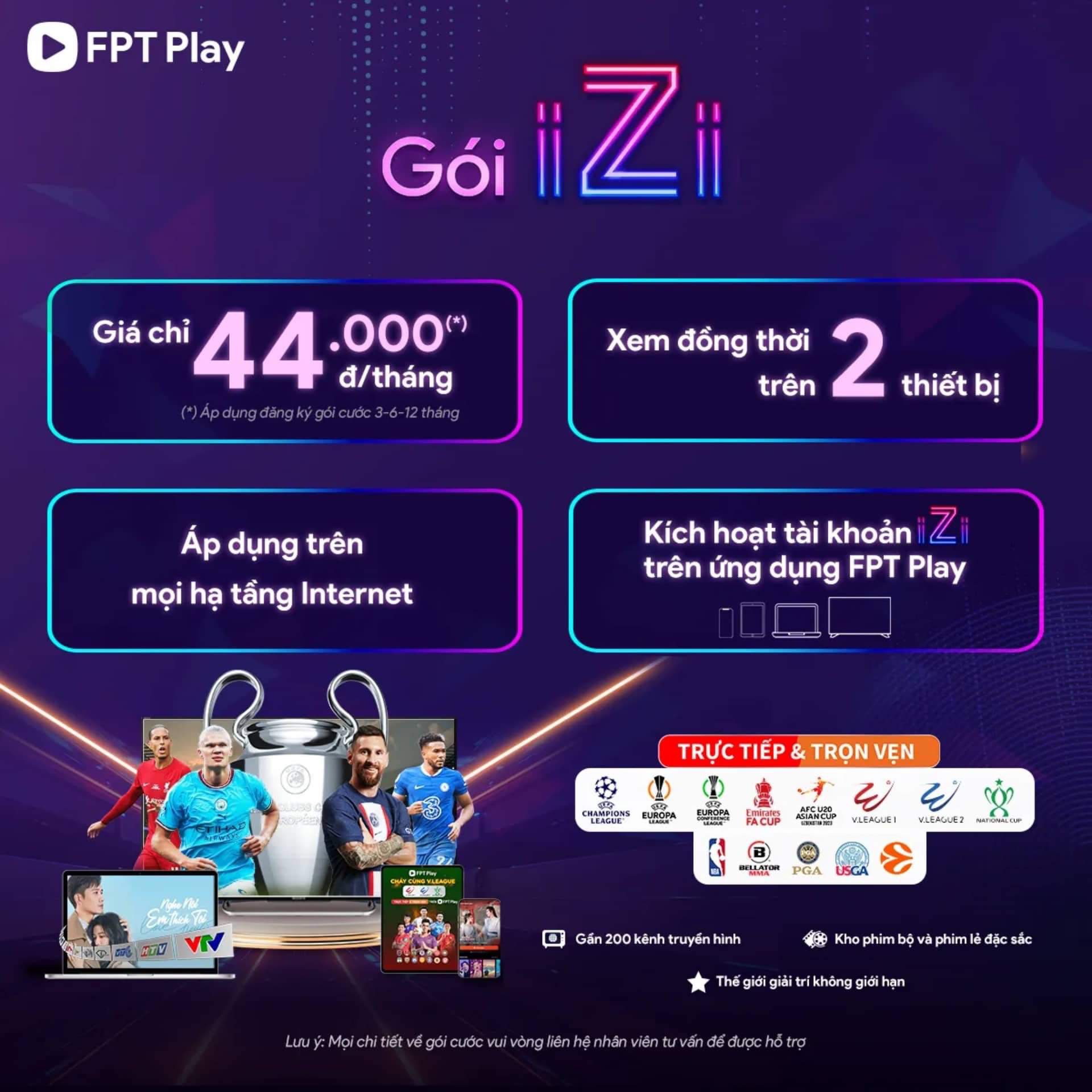 GÓI IZI là gói dịch vụ truyền hình của FPT Play mới được ra mắt nhằm hướng đến đối tượng khách hàng trẻ với giá cước ưu đãi sập sàn, cung cấp nội dung phong phú giải trí đặc sắc.